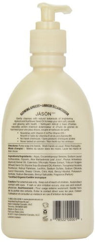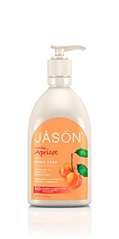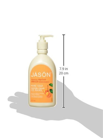 Jason Pure Natural Hand Soap Glowing Apricot Description: New Look - Same Great Formula. Brightens with Natural Apricot and Sunflower Seed Oils. Nourishes with Vitamin E and Pro-Vitamin B5. Paraben, Sodium Lauryl/Laureth Sulfates and Phthalates Free. This botanical wash gently cleanses and safely nourishes your skin with Vitamin E and Pro-Vitamin B5. This natural blend of brightening Apricot and Sunflower Seed Oils keeps your skin soft, smooth and glowing with health. Free Of Parabens, sodium lauryl/laureth sulfates, phthalates, animal by-products and animal testing. Disclaimer: These statements have not been evaluated by the FDA. These products are not intended to diagnose, treat, cure, or prevent any disease.